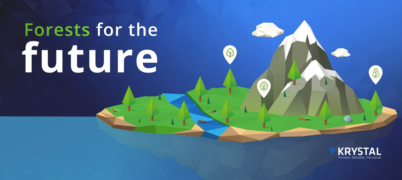 Customers can head to their client area to see their very own virtual forest, which will grow as we head towards our target. Krystal clients will be quickly able to visualise the positive impact they’re having as a result of their patronage. The number of trees we plant on behalf of clients will increase over time and in the future we hope to be able to include trees conserved too and allow clients to add to their own forests directly.