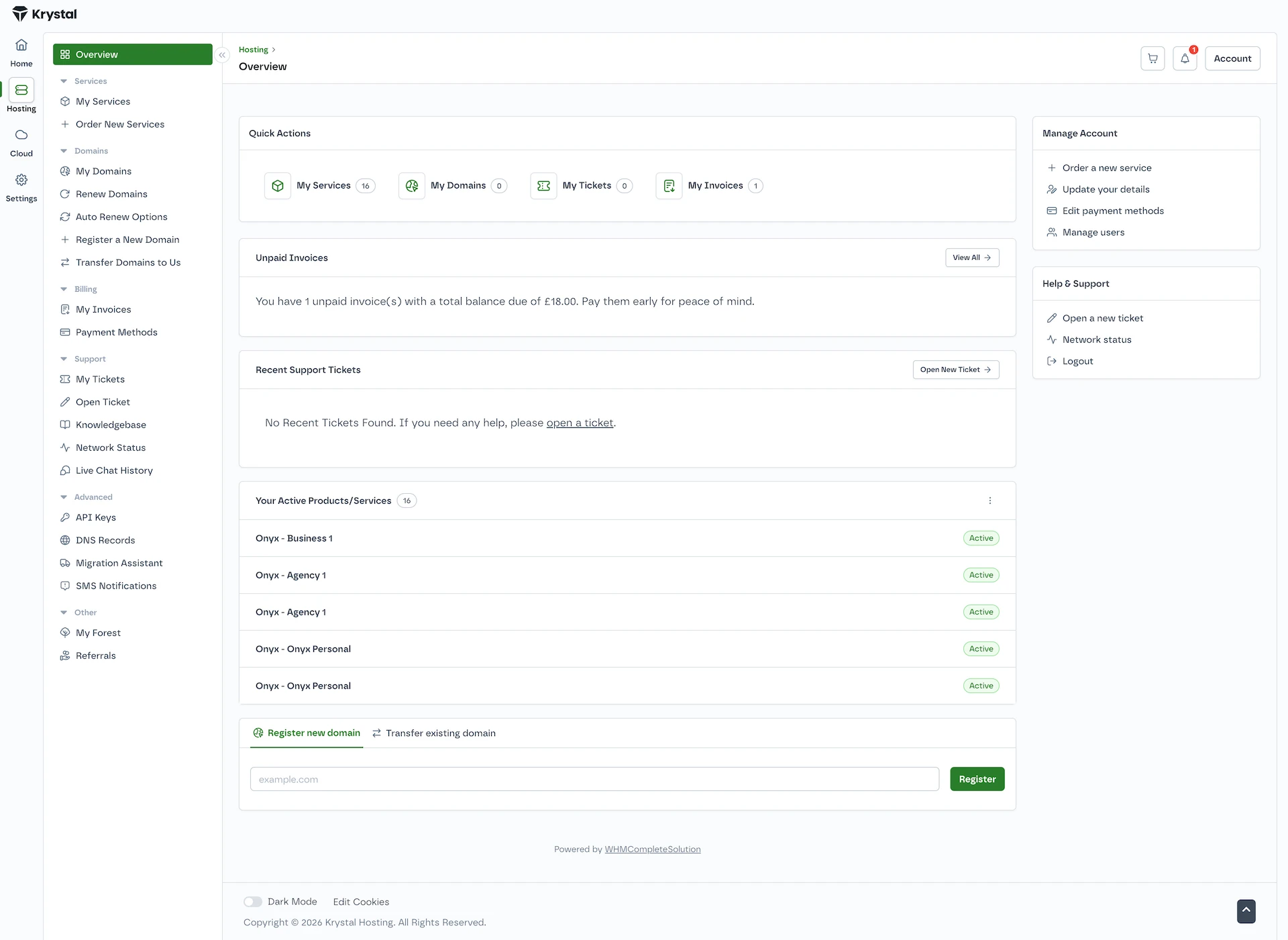 Imagine an instantly loading and clean looking client area that makes the simple tasks simple. Not seen that before? Neither had we, so we built it.